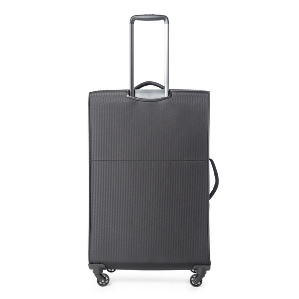 - SOFT SHELL POLYESTER 500D - ткань из полиэстера с толщиной нити 500D, имеющая объемный крупный узор, создающий внешнюю игру света, и с внутреннее полиуретановое покрытие, защищающее содержимое чемодана от намокания во время дождя средней интенсивности. Также ткань обладает хорошей износостойкостью, и не разрушается под действием ультрафиолетового излучения.
