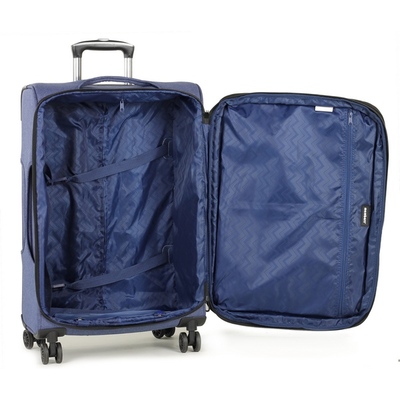 Коллекция чемоданов Members Beaufort представлена довольно компактными моделями для своего типоразмера, однако расширительный клапан на замке позволяет при необходимости увеличить полезный объем чемодана на 10%. Внутренний объем имеет ремни для фиксации вещей и сетчатый карман на молнии. Однако основной отличительной особенностью всех чемоданов Members Beaufort является наличие специального внутреннего водозащитного кармана на молнии, предназначенного для ванных принадлежностей. Карман крепится на двух кнопках, может быть отстегнут и использоваться отдельно. Верхняя и боковая ручка имеют широкое основание в местах крепления, что повышает их надежность. Чемоданы оснащены четырьмя сдвоенными полноповоротными колесами для облегчения маневренности и выдвижной телескопической ручкой с двумя фиксированными положениями. Материал чемодана Members Beaufort (M) Navy имеет внутреннее PU-покрытие и внешнюю структуру идентичную материалу Denim (джинс), что делает модель визуально привлекательной, практичной и в значительной степени защищенной от проникновения влаги